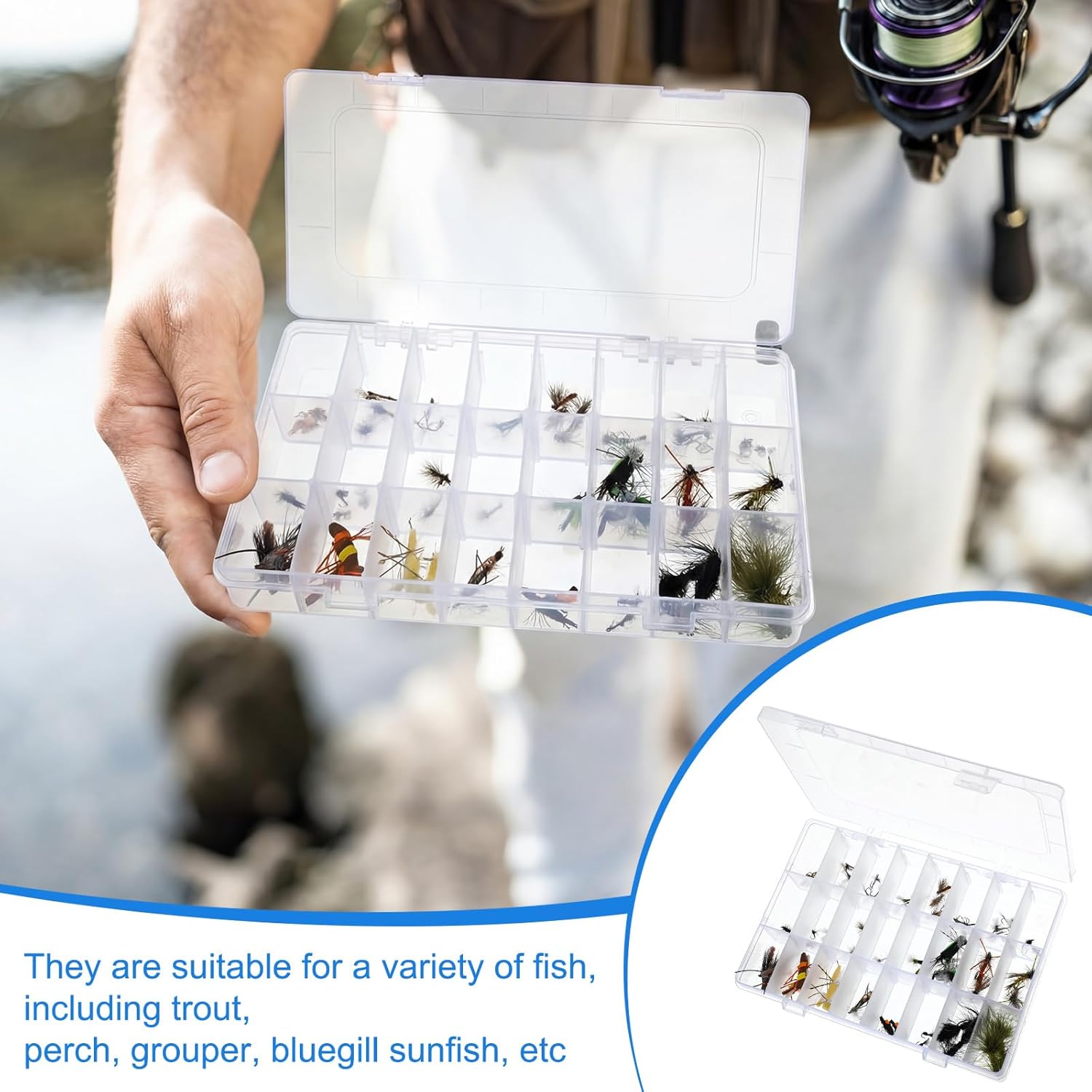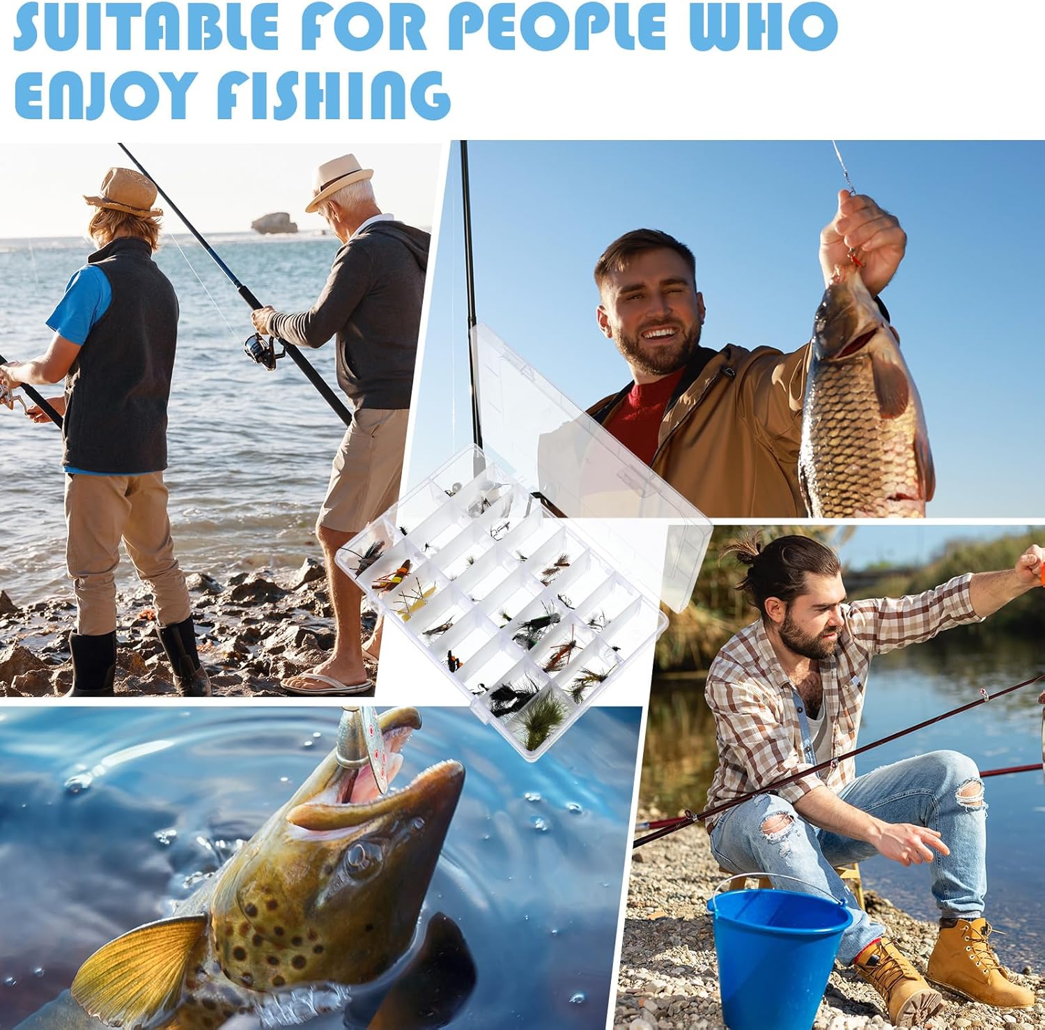 Features: This fly fishing lure set kit includes two 7.5 x 5.1 x 1.4 inch/ 19 x 13 x 3.6cm plastic boxes with adjustable dividers. The waterproof containers organize 122 flies by type to prevent tangling and damage during transport. The trout bass lure set includes two double-sided instructional cards with fly matching formulas and aquatic insect guides. New anglers can accurately select flies and improve fishing efficiency with visual references. Specifications: Material: brown, olive, clear Color: clear Package includes: 122 x Hand tied fly fishing flies assortment 2 x Boxes 2 x ID cards Notes: Manual measurement, please allow slight errors on size. The color may exist a slight difference due to different screen displays