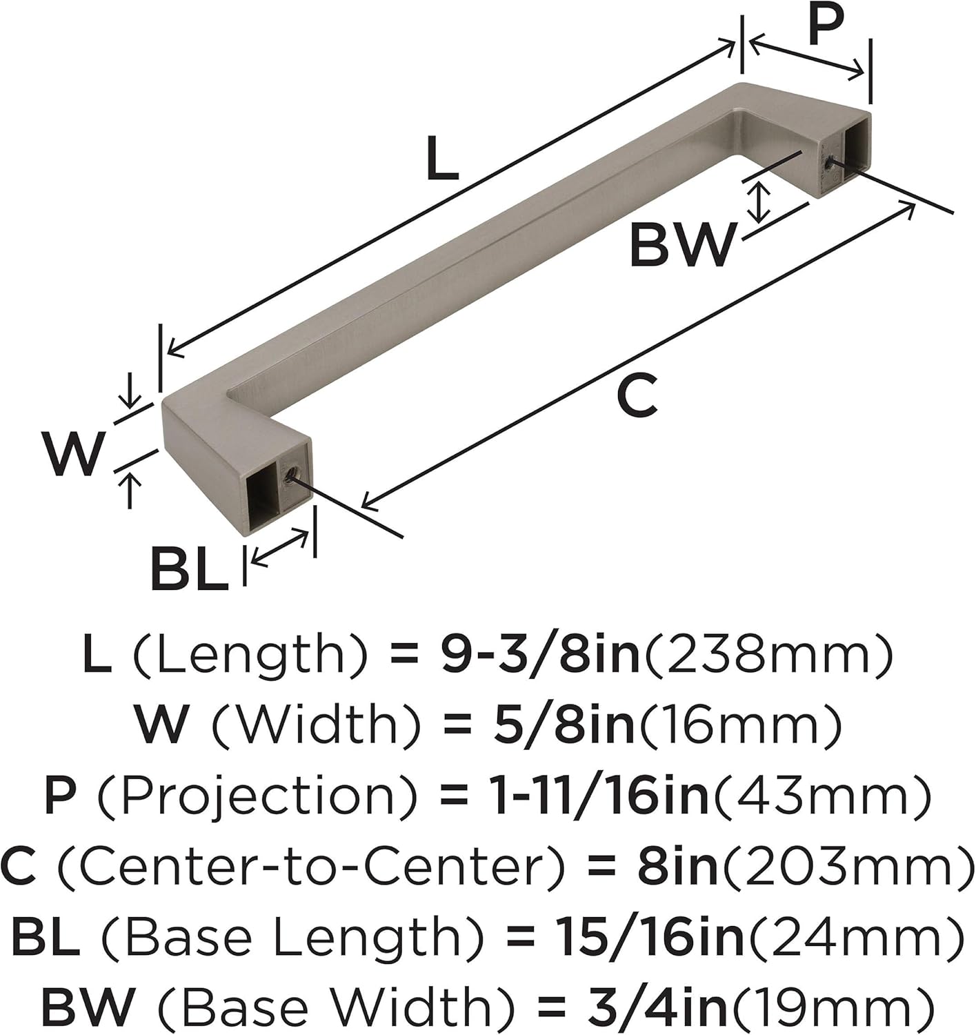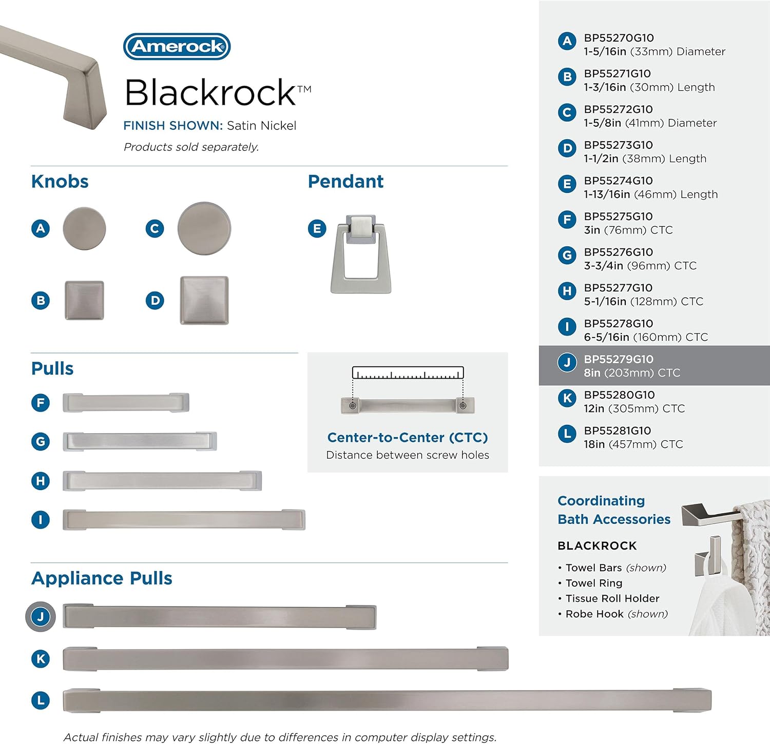 Product Description The Amerock BP55279G10 Blackrock 8 in (203 mm) Center-to-Center Appliance Pull is finished in Satin Nickel. The Blackrock collection offers sleek simplicity with a contemporary indulgence. This eclectic line boasts bold shapes and sizes. The classic Satin Nickel finish provides a sleek, lightly brushed, warm grey metallic look. Amerock offers a complete line of decorative and functional cabinet hardware, bath hardware, hook and rail and wall plates. Amerock’s award-winning decorative and functional hardware solutions have built the company’s reputation for chic design accessories that inspire homeowners to express their personal style. Available in a variety of finishes and styles, Amerock offers high quality designs at affordable prices. Always Creating. Always Timeless. Always Amerock. From the Manufacturer The Amerock 55279G10 Essential'Z Oversized Pull is finished in satin nickel and is 9.4-inches long and 0.75-inches wide with an 8-inch center to center length. With its seamless blend of clean lines and subtle curves, the Essential'Z Bar Pull strikes just the right balance between form and function. Amerock markets decorative hardware solutions that inspire, coordinate and help express personal style. For the kitchen, bathroom and the rest of the home, with a variety of finishes and designs for all decorating tastes, Amerock is the ultimate, time-tested source for hardware needs. Amerock markets products in four categories: decorative hardware, decorative hooks, bath accessories and functional hardware.