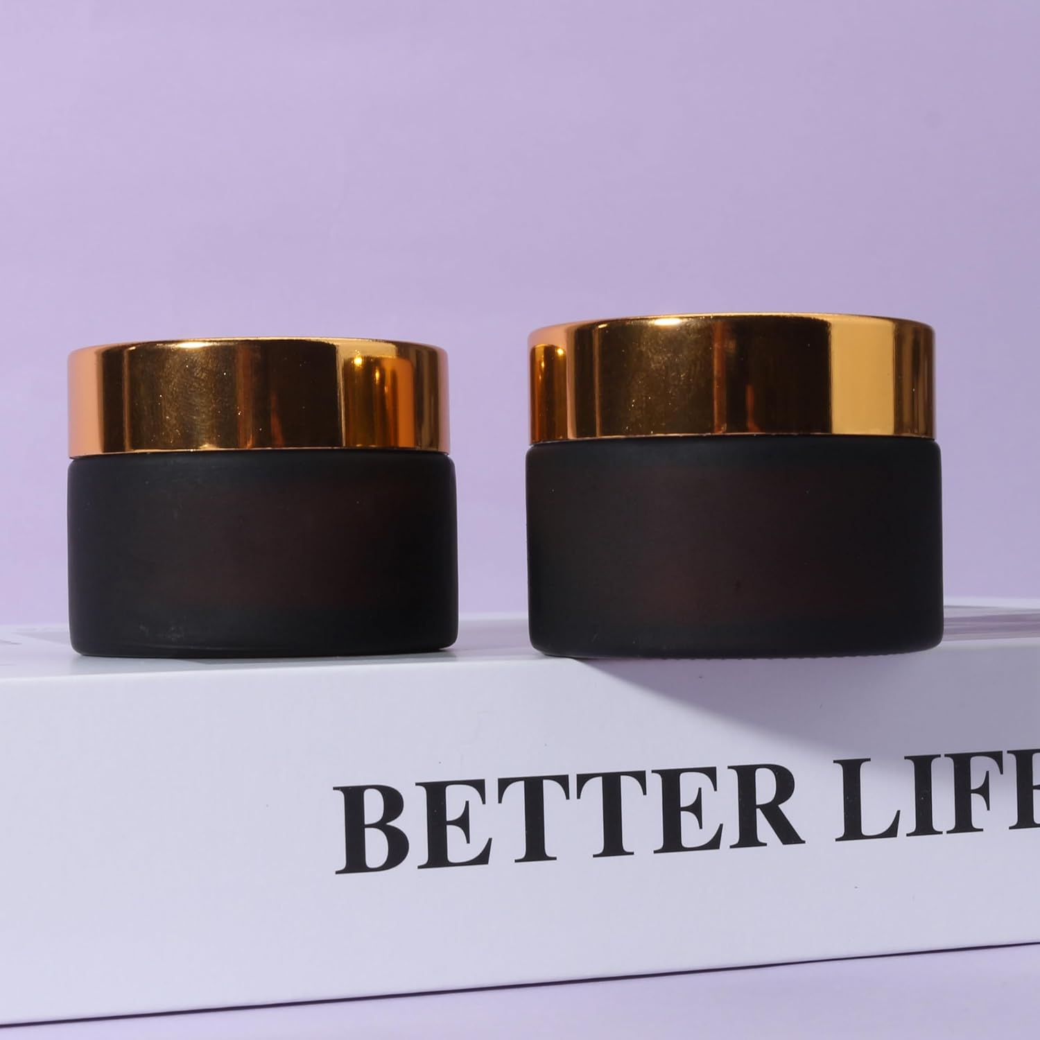 Color Frosted Brown jar gold lid