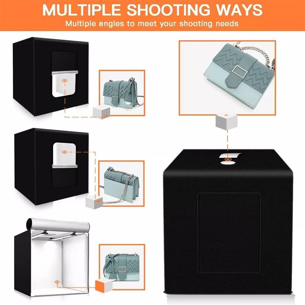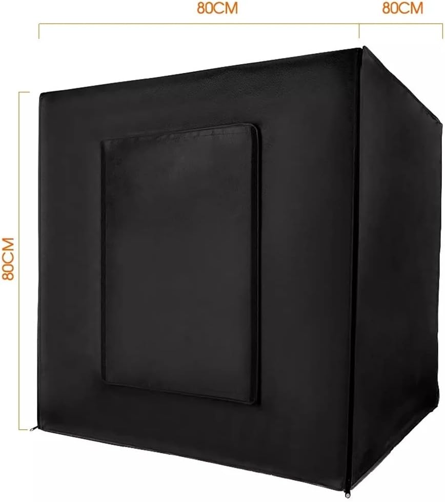Features: The light source is made of LED with high brightness, low power consumption and high CRI. It is easily assembled with two pieces of LED boards, without dead corner and even light fill. Multi-angle Shooting:The front window supports a horizontal shooting and the window on the top supports a 90 degrees vertical shooting. Allow you to take great pictures in white background with different devices: smart phones, cameras or professional cameras. lights: Perfect daylight temperature for professional images offer the appropriate amount of light for producing bright and vibrant photos. Easy to carry: This photo studio is designed to be both lightweight and sturdy while, equiped with a carrying bag, easy to carry. Specification: Material: Polyester fabrics+ABS Size: 80*80*80cm Power: 48W Input Voltage: 24V Electric current: 2A Rated Voltage: AC110V or 220V, DC24V Color Temperature: 5500K+/-200K LED Quantity: 126pcs Brightness: MAX. 15000LUX CRI: above 92 Weight: about 5.2kg Package Includes: 1* Carry bag 1* Photo box body 2* LED Light boards 12* Connecting Tube 8* Three-way connector 1* Power plug 1* Power cable 1* Separate dimmer Note: Please allow 1-3cm (0.4-1.18") difference due to manual measurement and slight color variation for different display setting. Thank you for your understanding, nice day!