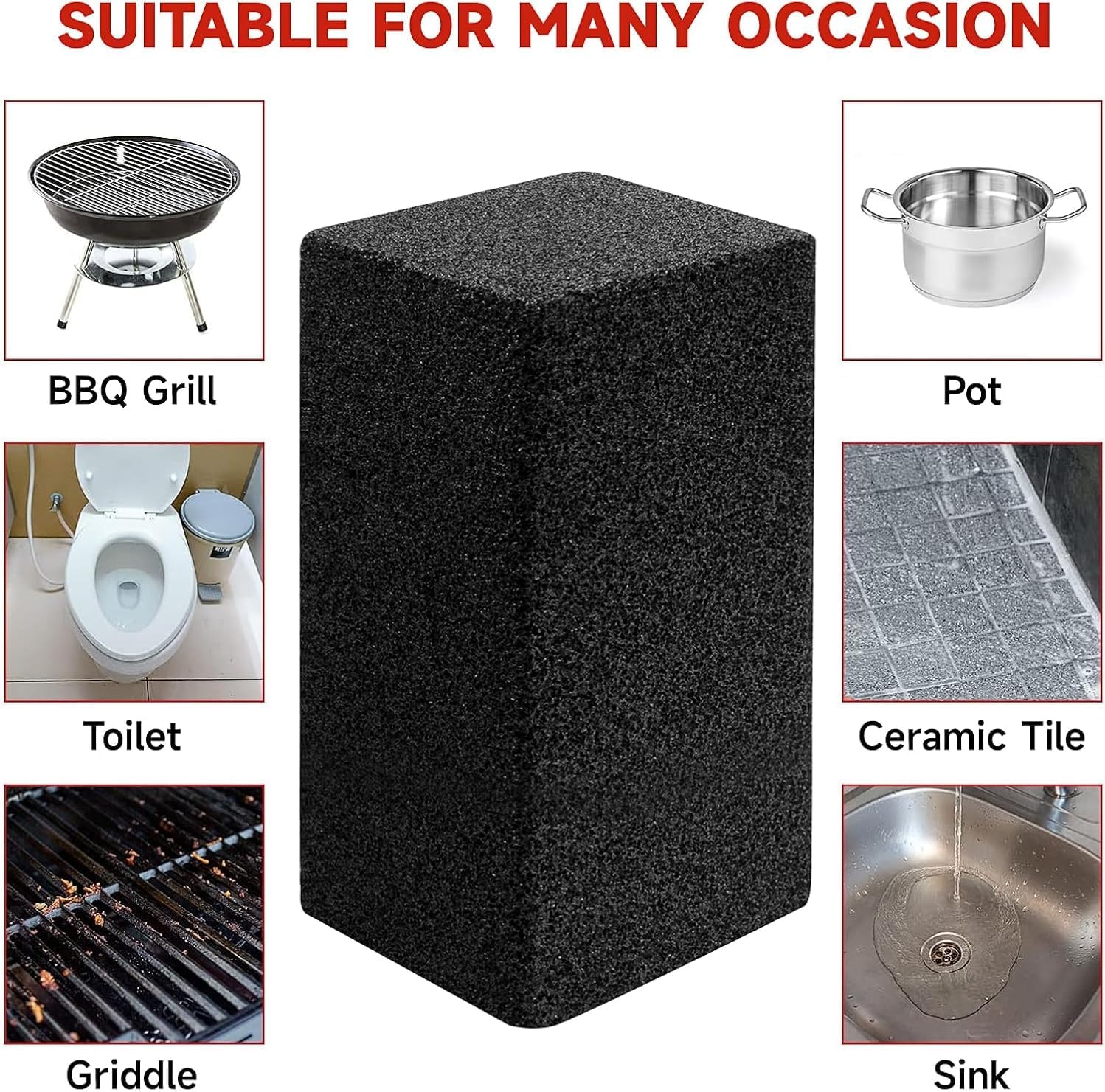 CLEAN YOUR FLAT TOP GRILL LIKE A PROFESSIONAL with a grill stone cleaning block!Grab a multipack of the grill bricks commercial kitchens use for a quick, non-toxic flat surface grill cleaner. The pumice stone surface provides a soft abrasive that won't leave behind metal splinters like wire brushes or steel wool.Why use pumice stones for cleaning instead of a wire brush, steel wool or other grill cleaning supplies?We're glad you asked! Our grill cleaning stones do not contain any harmful or flammable chemicals, so they're safe to use on hot grill surfaces. The grill cleaning stone also won't leave behind any metal splinters or bristles that could harm your guests. Even if some stone dust gets into food, you can rest assured that it's non-toxic!I've never used a grill brick cleaner - how does it work?Pour a little warm water or club soda on the grill, apply the flat surface of the cleaning brick to the grill with light pressure to remove residue, and rinse the surface with a little water before cooking to rinse off any dust that may be present.The grill brick smells weird on a hot grill, are you sure it's safe?Our pumice stones are made with 100% non-toxic materials. A slight sulfur-like smell is totally normal and safe.