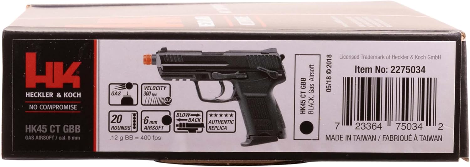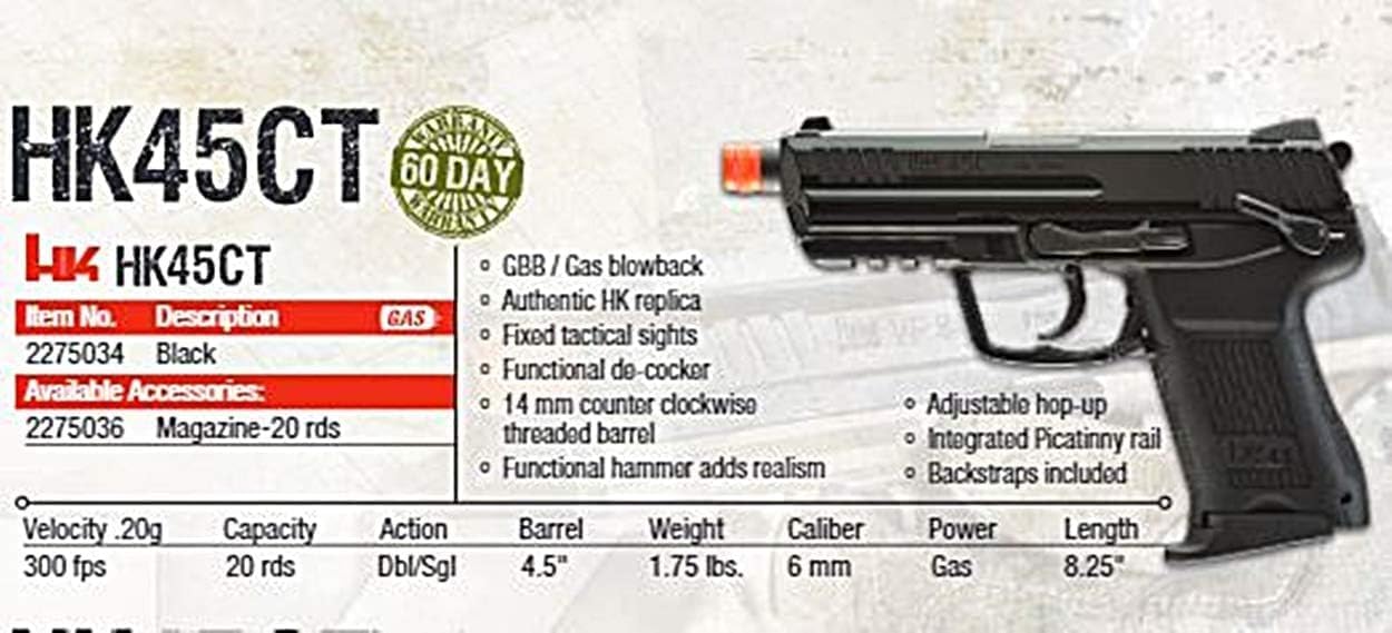 | Included Components | HK Heckler & Koch HK45 GBB Blowback 6mm BB Pistol Airsoft Gun, Black, HK45 Compact GBB |
