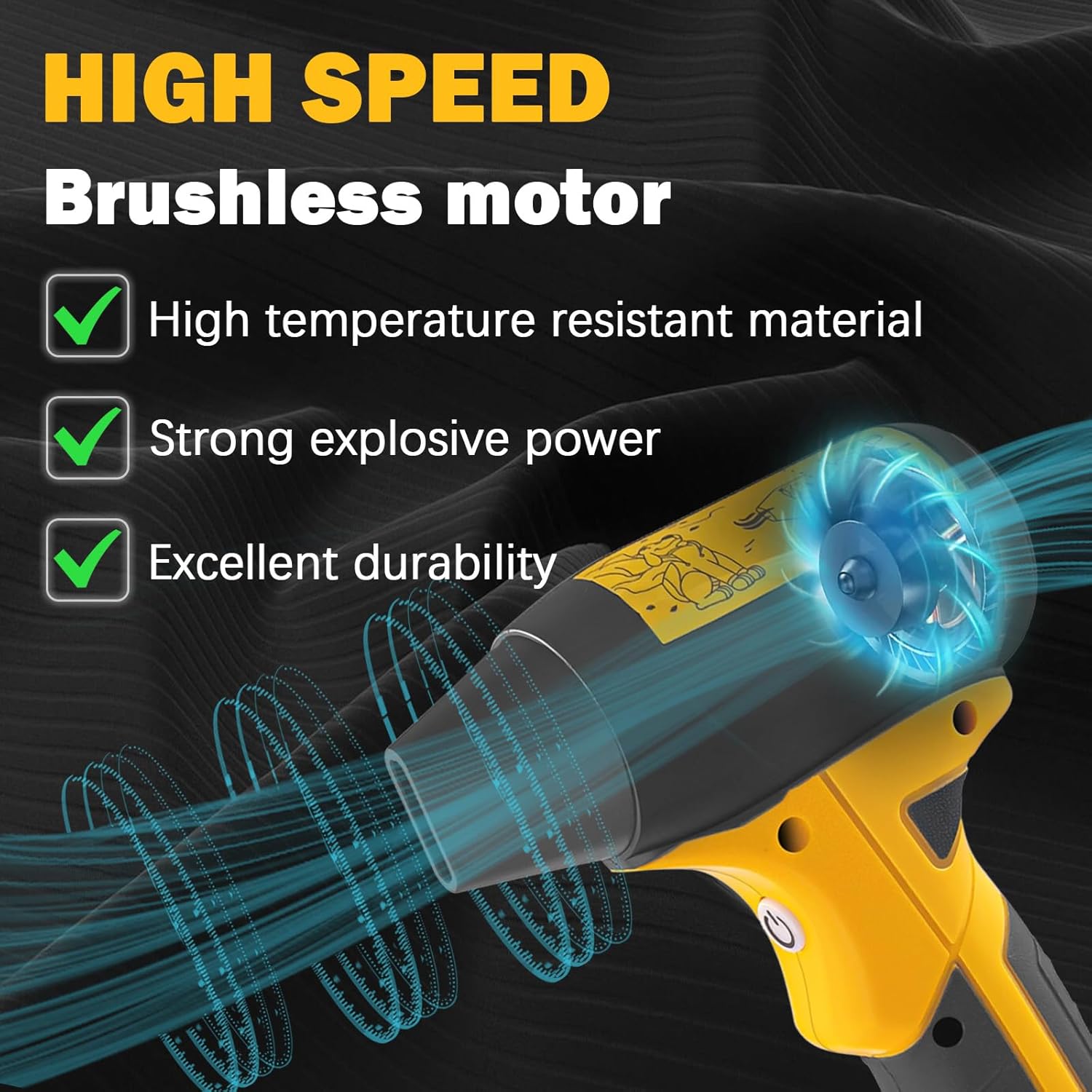 • 4-Step Air Speed Adjustment & Easy Operation:There are 4 speed settings to adjust as needed. The turbo fan with brushless high output DC motor has 4 selectable air speeds. Soft wind: 41640RPM, Normal wind: 78120RPM,Blast wind:110280 and Intense wind: 134040RPM . Press and hold the power button for 3 seconds to turn on/off the power. Wind is produced only for the time that the start button is held down. Easy to operate, anyone can use it easily.