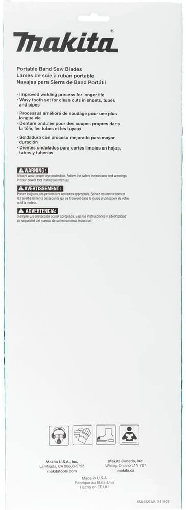 The Makita 44-7/8" 24 TPI Bi-Metal Portable Band Saw Blade (T-05599) is made for use with Makita corded and cordless portable band saws. The T-05599 features bi-metal construction for up to 3x longer life than carbon blades. The Portable Band Saw Blades feature 24 TPI configuration ideal for use cutting materials up to 1/8" thick. The blades are Ideal for cutting a wide variety of materials including, rebar, pipe, all thread and channel. They make clean, quick cuts in a variety of ferrous and nonferrous metals.