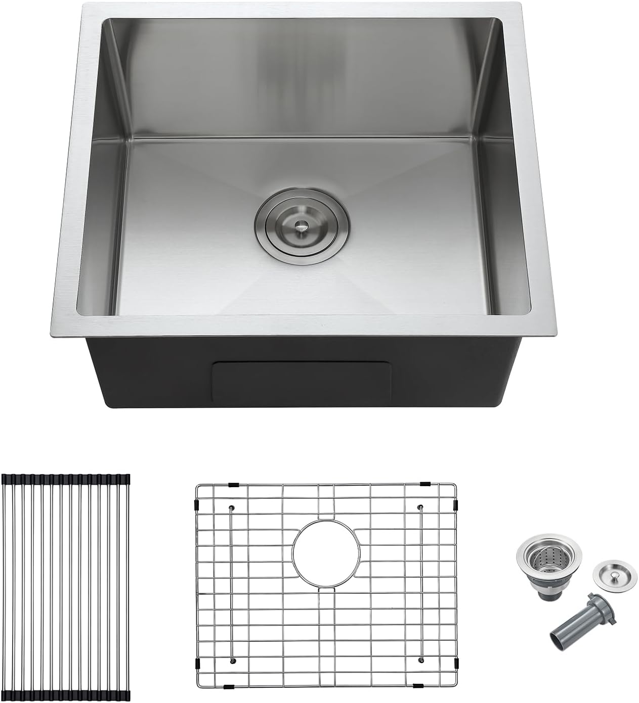 Transform Your Compact Kitchen with the MENATT 20x16 R10 Corner Undermount Sink System Maximize both space and functionality in your kitchen with the intelligently designed MENATT 20x16 Undermount Sink. Combining smart dimensions with professional features like R10 rounded corners, an X-groove drainage system, and a versatile drying rack, this sink delivers premium performance in any compact setting. This package transforms your sink into a multifunctional hub: Roll-up Drying Rack: Unroll over the basin for convenient air-drying of dishes, glassware, or utensils, then store compactly when not in use. Heavy-Duty Bottom Grid Mat: Protects the sink surface from scratches caused by pots, pans, and kitchen tools. Full Drainage System: Includes strainer, basket, tailpiece, and all necessary hardware for immediate installation. 1x MENATT 20x16 Inch Undermount Kitchen Sink 1x Roll-up Drying Rack 1x Stainless Steel Bottom Grid Mat 1x Complete Drain Assembly Kit Mounting Hardware & Installation Guide Dedicated Customer Support Specifications: Exterior Dimensions: 20" D x 16" W x 9" H Material: 18-Gauge 304 Stainless Steel, Brushed Finish Corner Design: R10 Rounded Corners Installation Type: Undermount Included Accessories: Roll-up Drying Rack, Bottom Grid Mat, Drain Assembly Kit