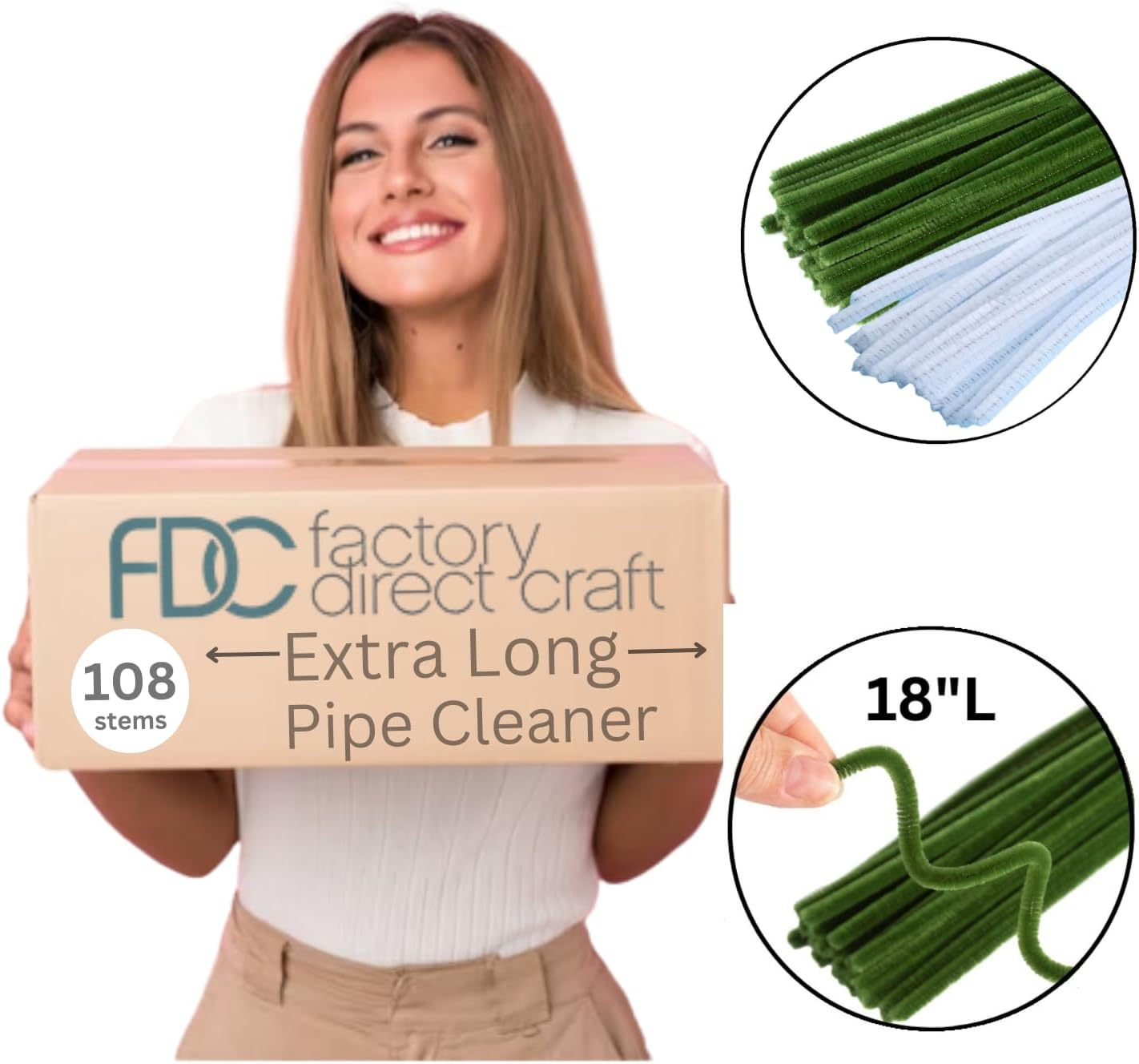 | Included Components | 108 Extra Long Green and White Pipe Cleaners |