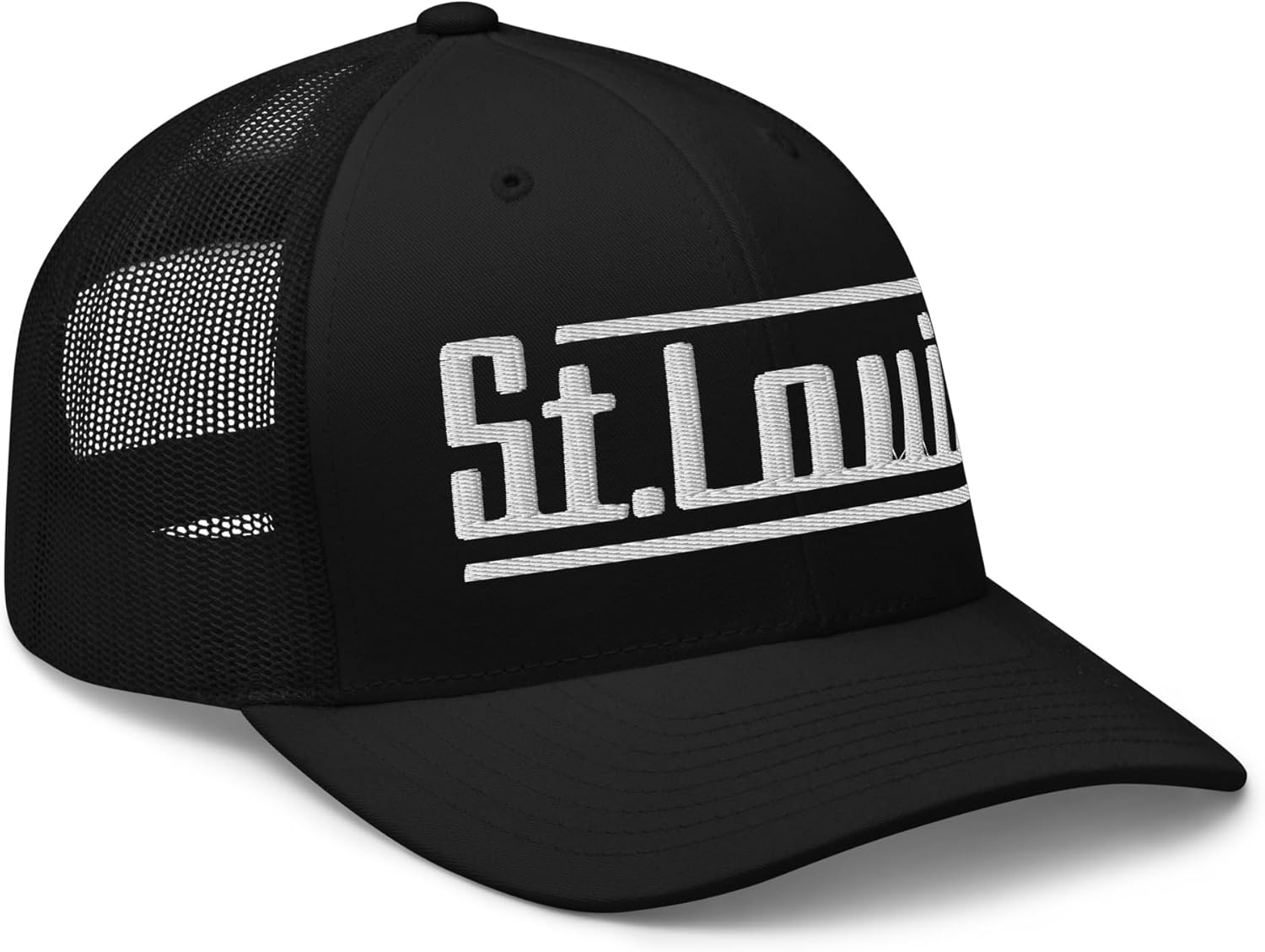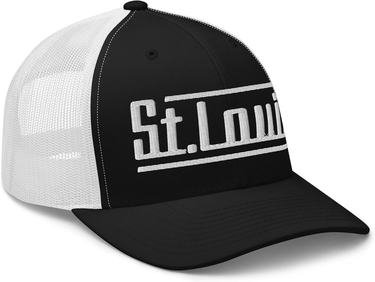 A unique and stylish St. Louis hat with a mesh back and mid-profile, 6-panel construction, this retro St. Louis trucker cap features a vintage St. Louis, MO design that is sure to be appreciated by anyone who loves The Lou / Gateway City. Available in a variety of color options, it's an awesome way to display your St. Louis pride and would make a great gift for dad, husband, grandpa or St. Louis, Missouri fan. Mid-profile, structured 6-panel St. Louis trucker hat60% cotton, 40% polyesterHard buckram front panels w/ mesh backPermacurv visor, matching undervisorPlastic snap closureHead circumference: 21 ⅝” – 23 ⅝”Type: St. Louis MO hat, mesh trucker capEmbroidered in the USASt. Louis GoTime Apparel